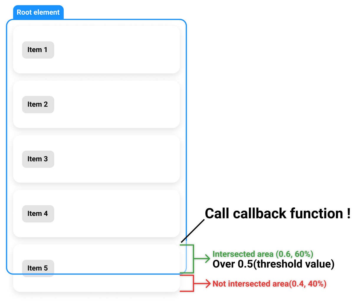 root element는 scroll 되어지는 요소들의 부모 element 즉, intersecting의 기준이 되는 element를 설정합니다.